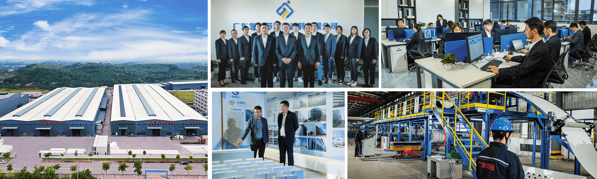 领冠公司,位于广东四大名山之一的肇庆市鼎湖山风景区附近,占地逾4.5万平方米,引进了3条长达240米具国际先进水平的全自动夹芯板连续生产线,和全套意大利6组份发泡设备,年生产量可达500万平方米以上。公司立足于广东,依托成熟的交通网络,辐射华南五省,产品能快速运往广西、湖南、海南、江西、福建等地区,是中国南部极具竞争力的冷库板和外墙板生产基地。